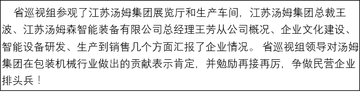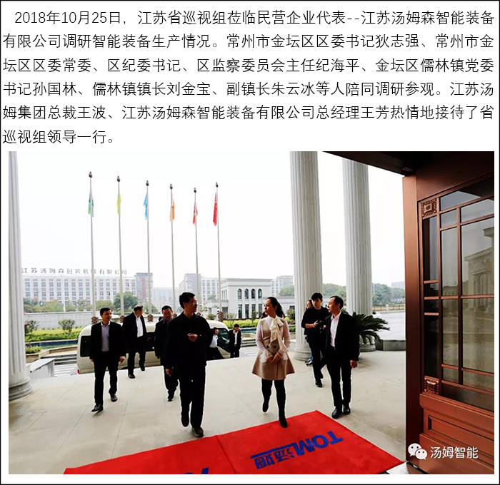 江蘇省巡視組蒞臨民營企業(yè)代表--江蘇湯姆集團(tuán)調(diào)研參觀!