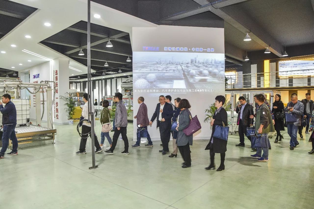 (參會嘉賓參觀湯姆集團灌裝線生產自動化立體倉庫存儲現場)