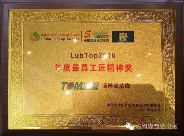 【喜訊】特約冠名單位江蘇湯姆集團(tuán)榮膺 LubTop2016年度行業(yè)供應(yīng)鏈金牌服務(wù)商和LubTop2016 年度具工匠精神獎(jiǎng)