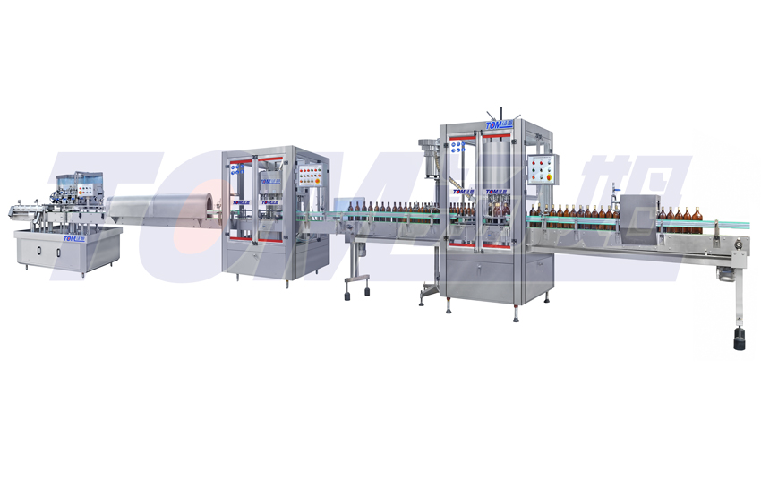 酒類、調味品回收瓶灌裝、壓(旋、扎)蓋,貼標工作流水線
