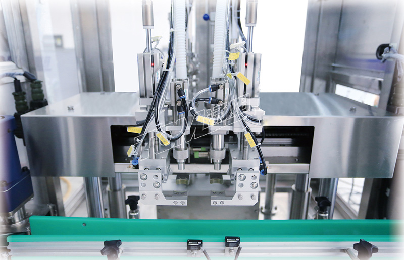1、伺服驅(qū)動跟蹤定位灌裝,灌裝走瓶同步進行,速度快,精度高。