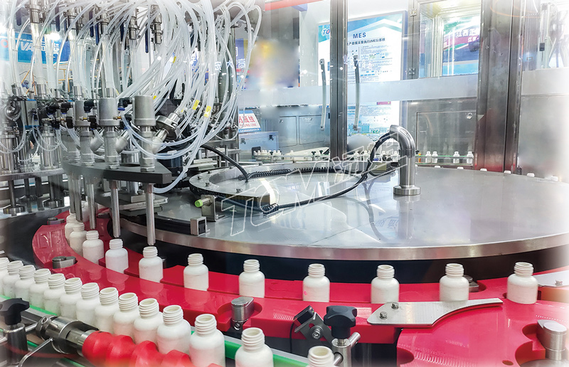 1、連續灌裝旋蓋無間隙,效率高,無卡瓶,無濺料;